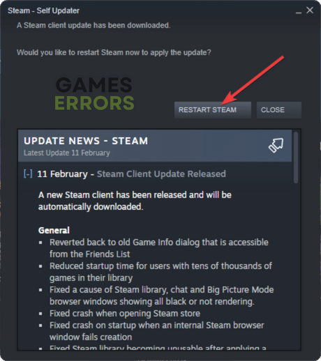- Kattintson ráGőzés elmegyEllenőrizze a Steam kliens frissítését-