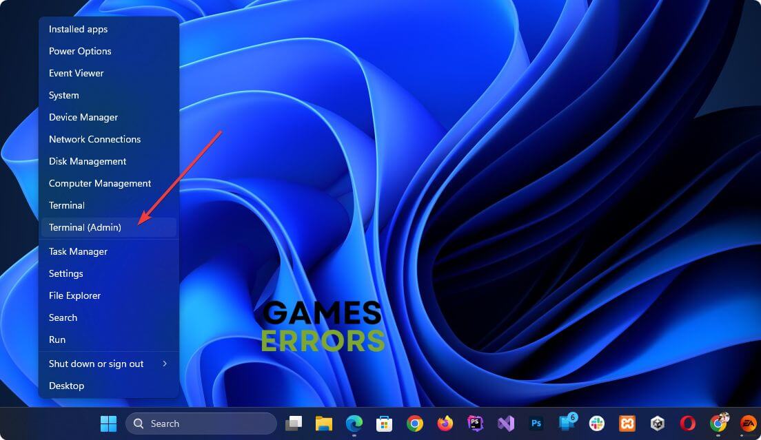 - Nyomja meg a Win + X gombot, majd kattintson a Terminal (admin) elemre.