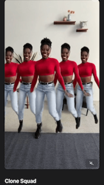 - KlónosztagAz effekt több másolatot készít rólad, hogy azt az illúziót keltsd, mintha egy csoportod van egy videóban. Jó lesz hozzáadni a hatást táncos vagy színészi videókhoz.