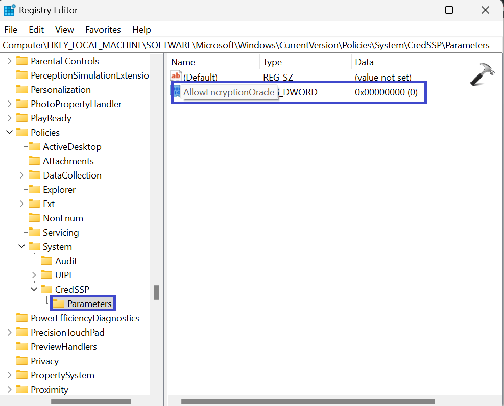 ComputerHKEY_LOCAL_MACHINESoftwareMicrosoftWindowsCurrentVersionPoliciesSystemCredSSPParameters