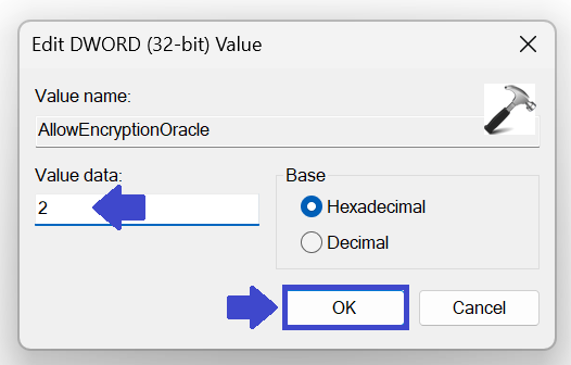 Kattintson a jobb gombbal a paraméterekre, és válassza az új => DWord (32 bites) értéket. Írja be az „AlloEncryptionoracle” „Kattintson az OK gombra.