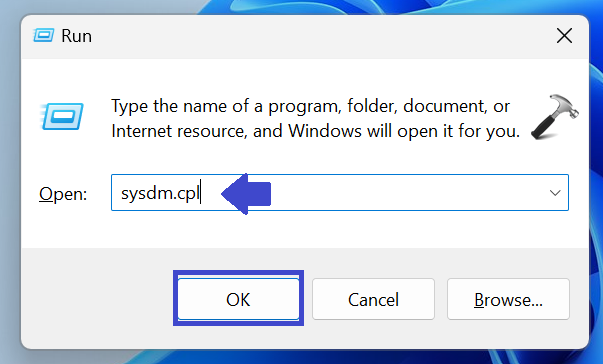 1. Nyomja meg a Windows gombot + R. Írja be a SYSDM.CPL gombot, majd kattintson az OK gombra.