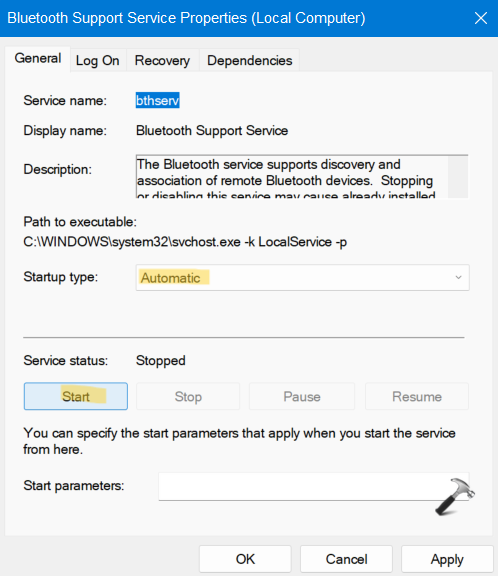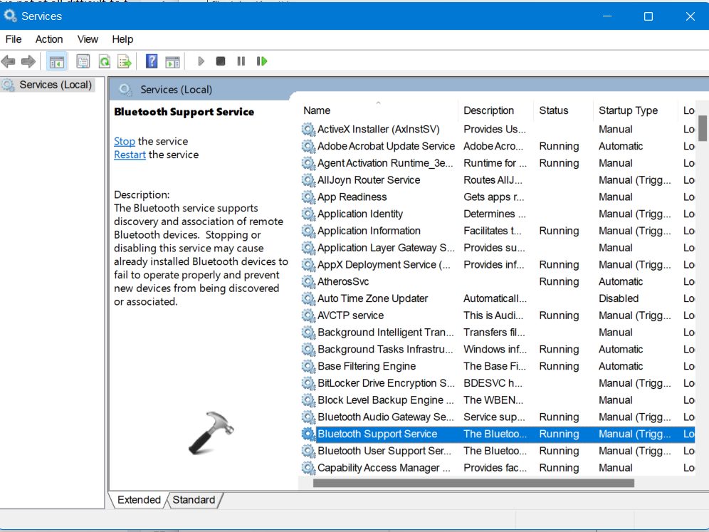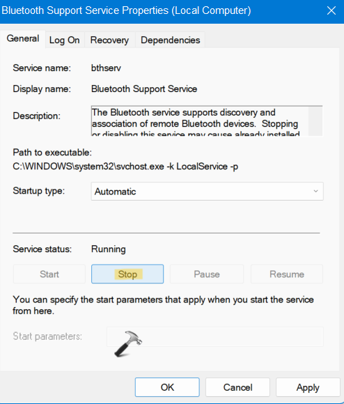 Fix 2: A Bluetooth támogatási szolgáltatás újraindításával
