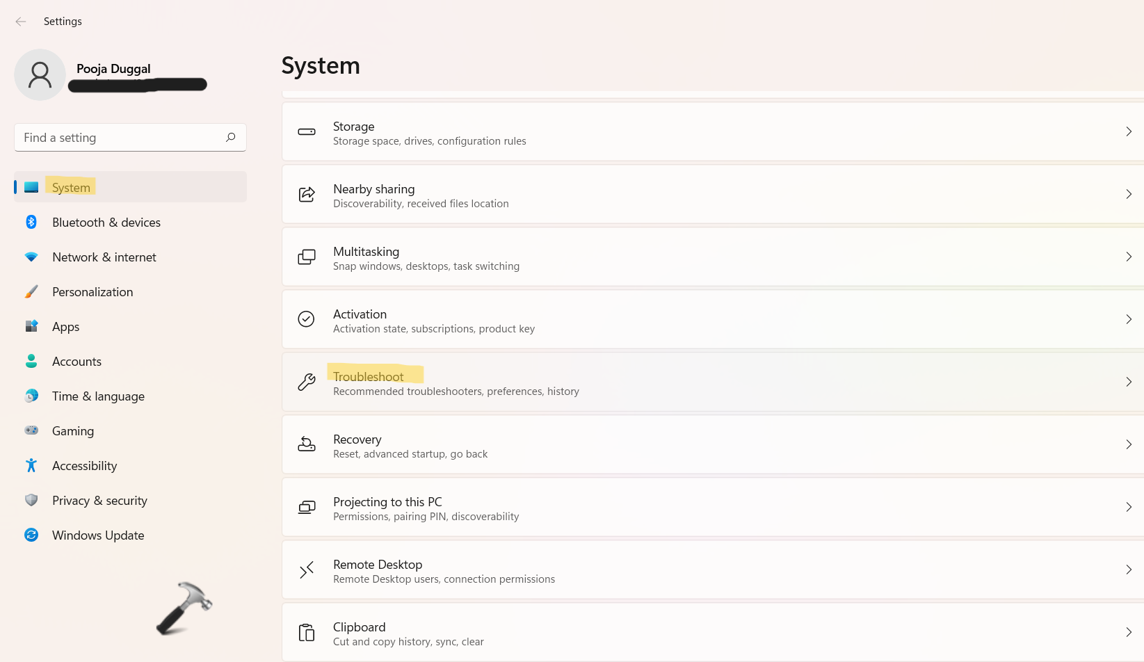 1.Nyissa ki aBeállításokalkalmazás és menj aRendszerMost válassza kiHibaelhárításjelen van a jobb oldalon.