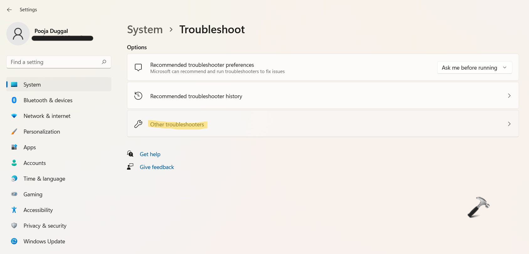 2.Ezután válassza kiEgyéb hibaelhárítók-