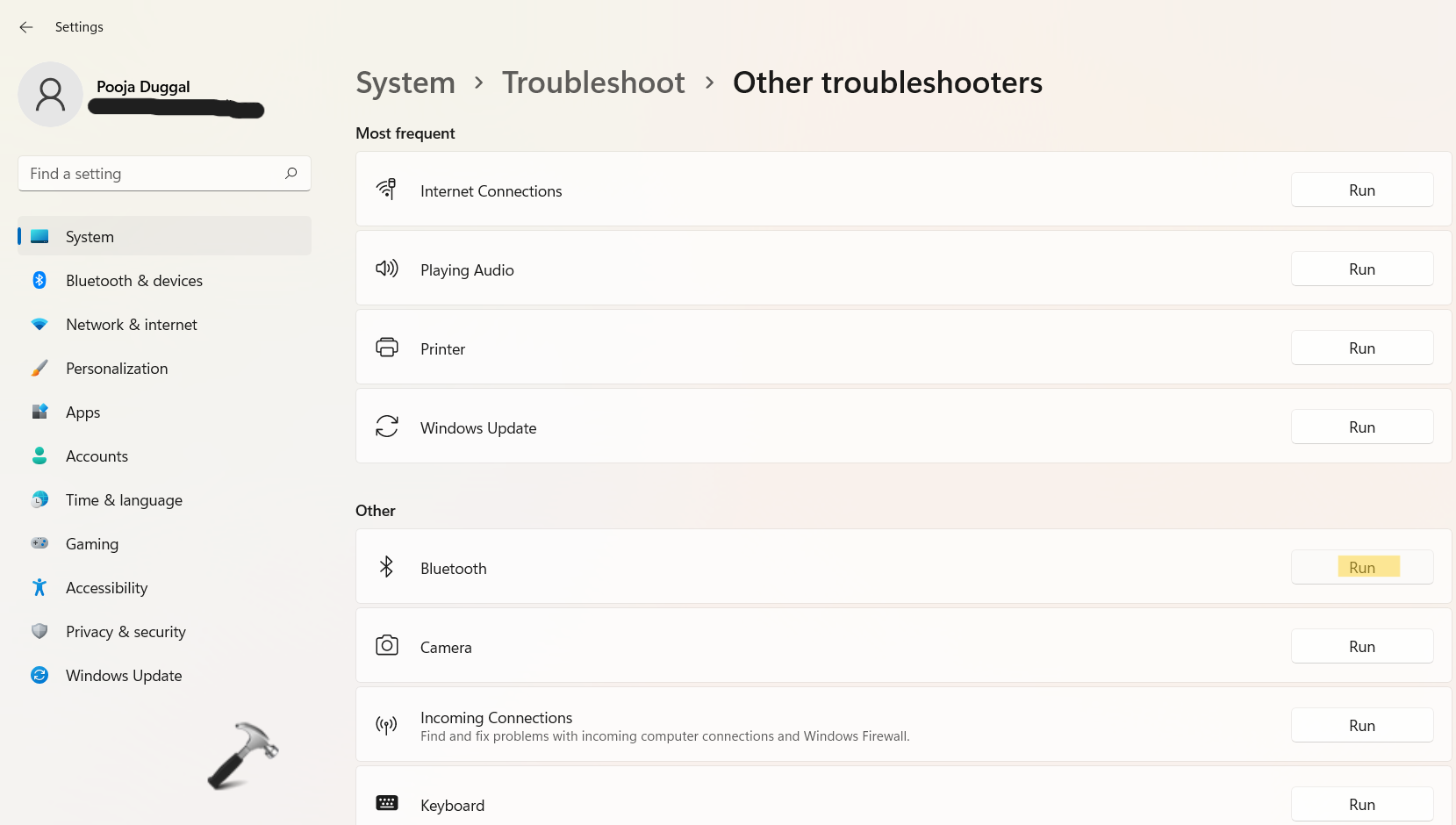 Fix 3: A Bluetooth hibaelhárító futtatásával