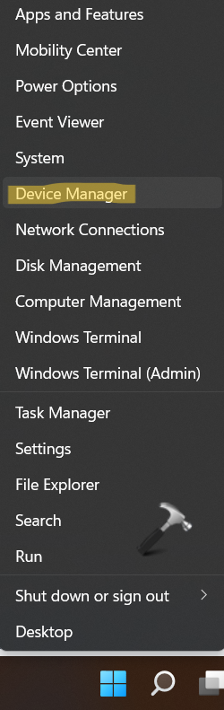 1.Először is nyissa megEszközkezelőa jobb gombbal kattintássalWindows Start-