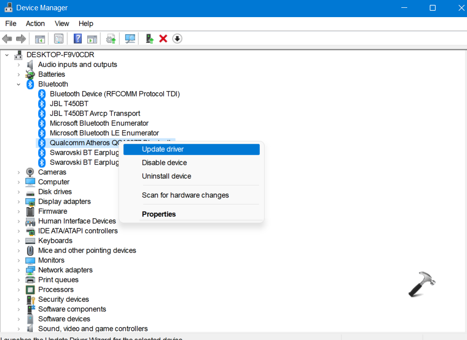 Fix 4: A Bluetooth illesztőprogram frissítésével