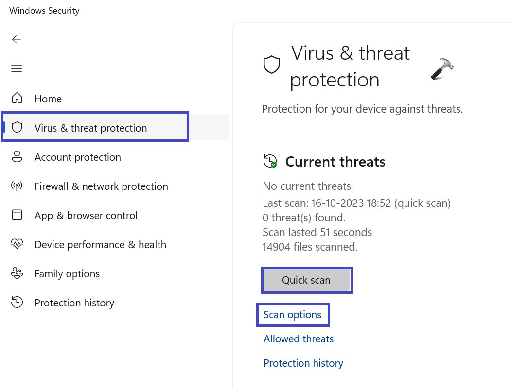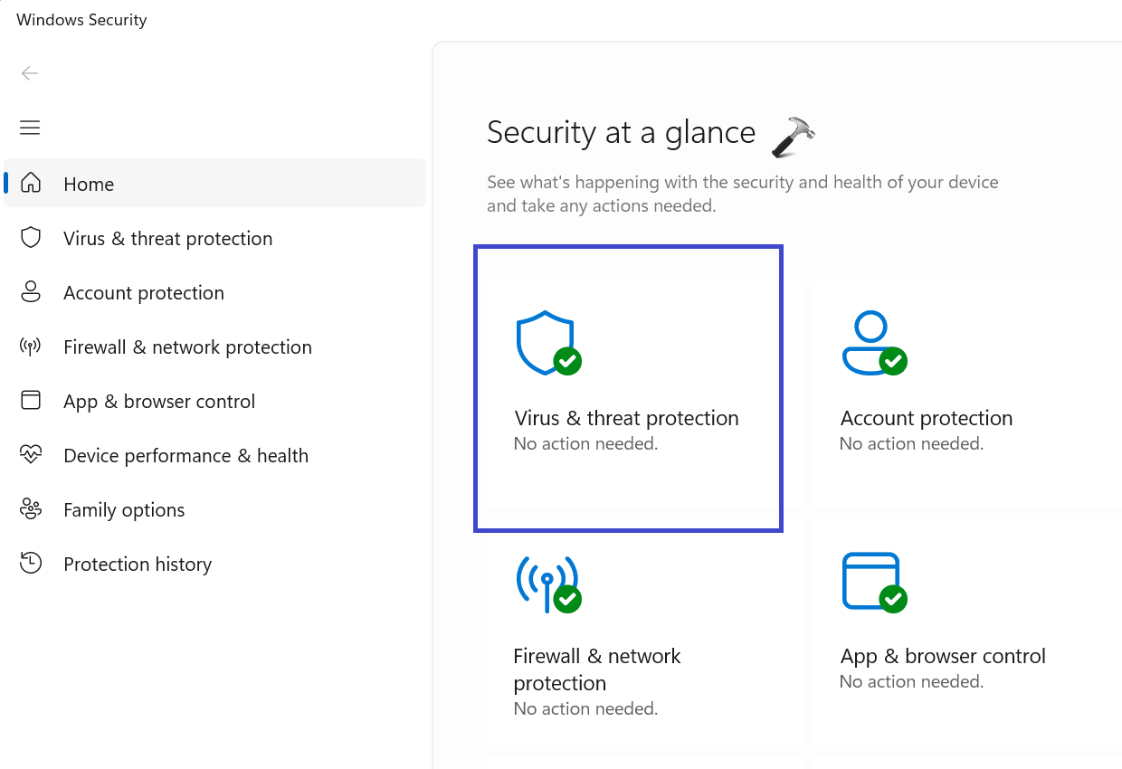 2. Most kattintson a „Vírus- és fenyegetésvédelem“.