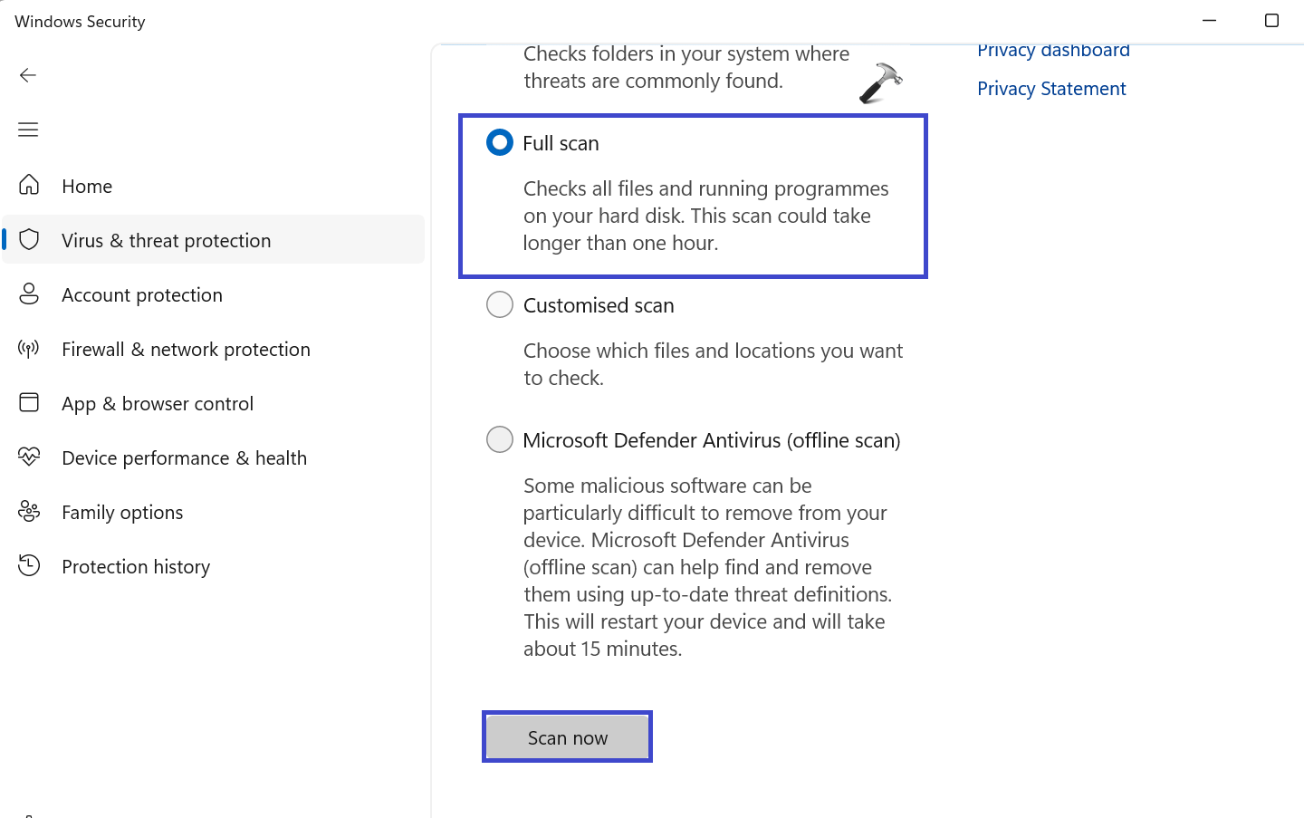 4. Válassza ki a „Teljes szkennelés” opciót, majd kattintson a „Szkennelés most“.