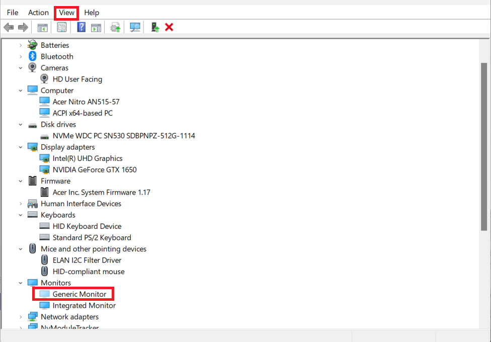 2. Kattintson a Nézet fülre, és válassza a Rejtett eszközök megjelenítése lehetőséget.