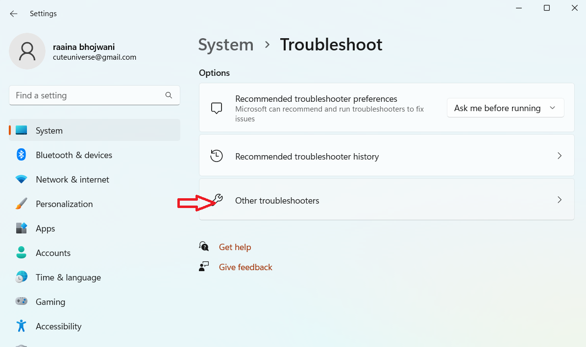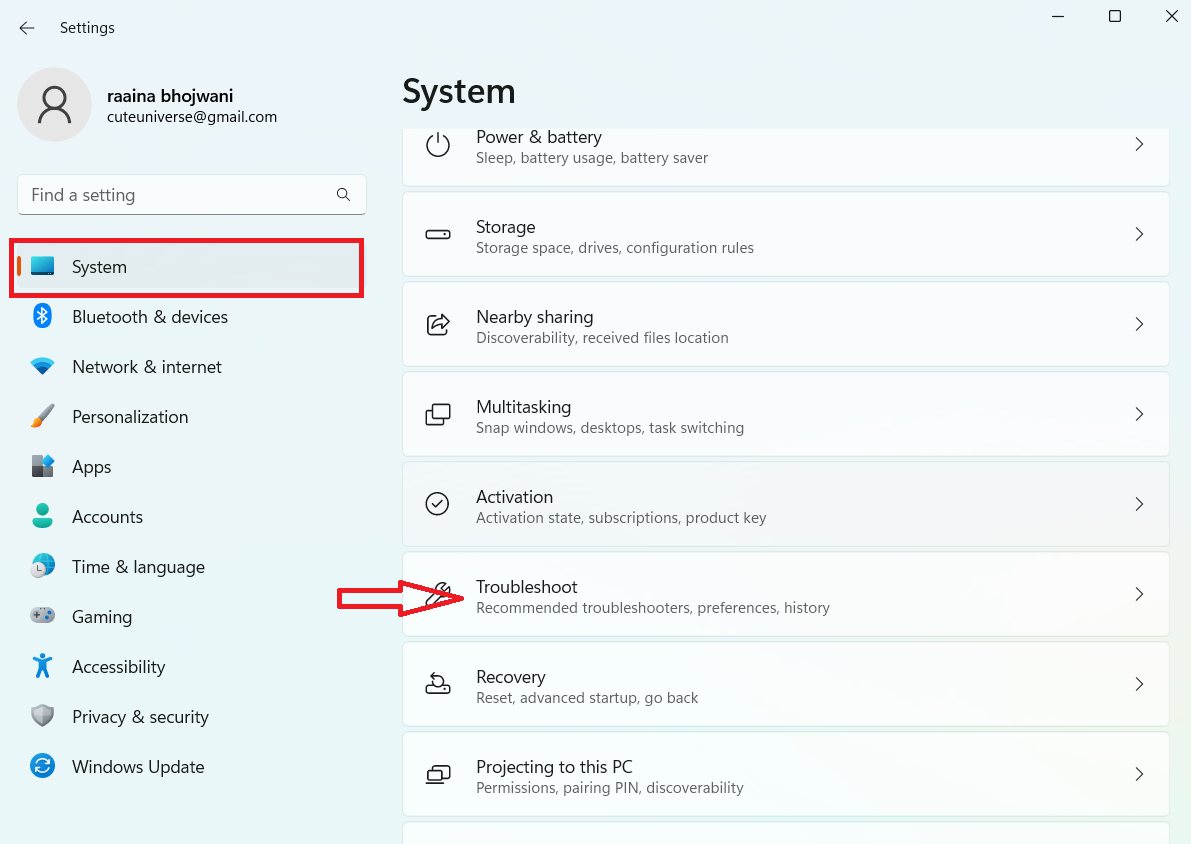1. Nyissa meg a beállításokat, majd kattintson a Rendszer> Hibaelhárítás gombra.
