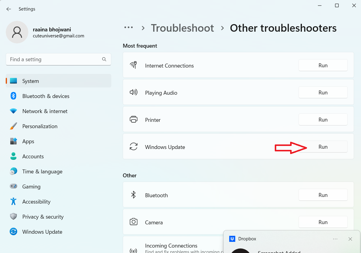 Fix 7: Futtassa a frissítési hibaelhárítót