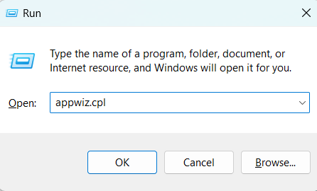 1. Nyomja meg a Win + R kulcsokat a futás megnyitásához, és írja be az appwiz.cpl fájlt. Nyomja meg az Enter gombot.