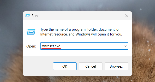 1. Nyomja meg a Windows + R billentyűket, írja bewsreset.exe, majd nyomja meg az Enter billentyűt a Windows App Store gyorsítótárának törléséhez.