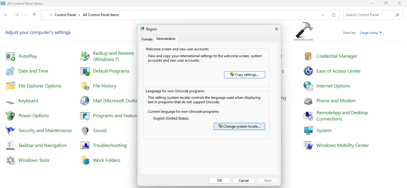 Ha a rendszer területi beállítása nem megfelelő, az a 0xc0000142 hibakódot okozhatja. Ezért kövesse az alábbi lépéseket a megfelelő rendszer-terület beállításához.