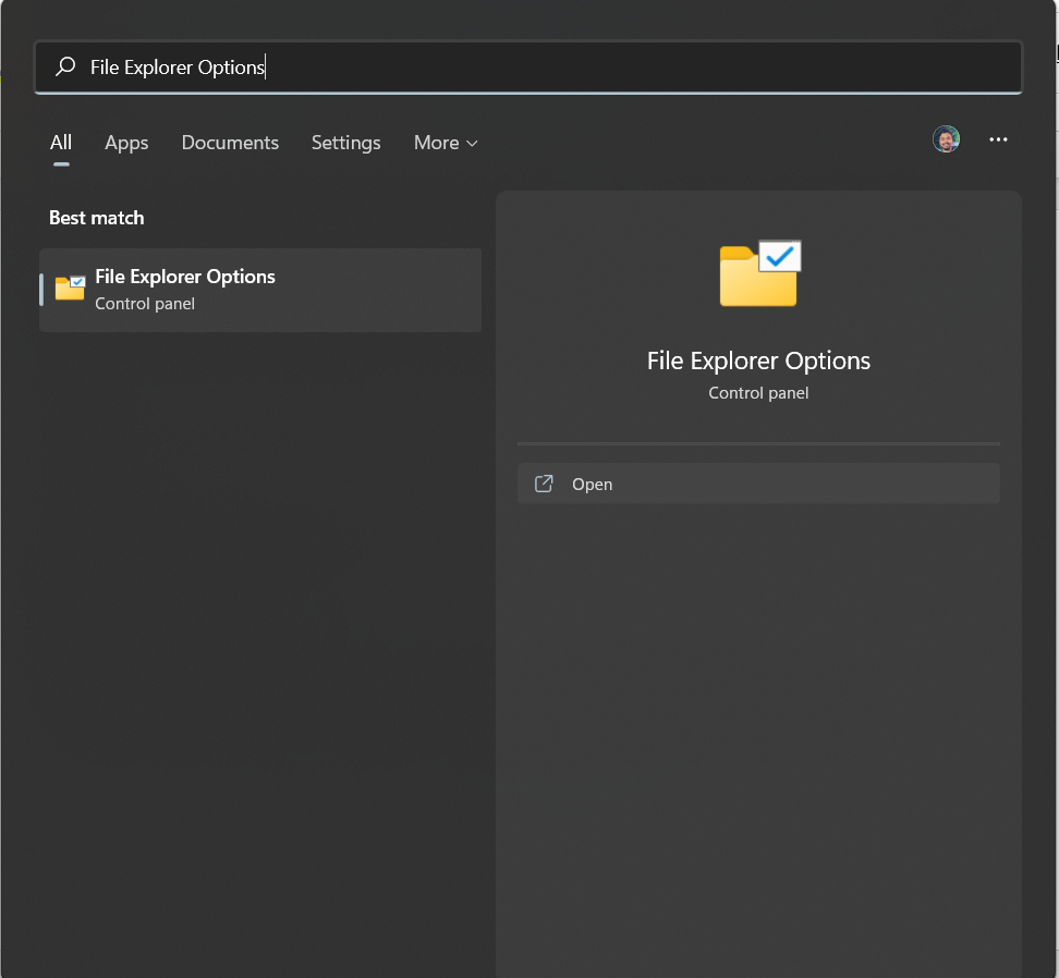 1. lépés: KeresésFile Explorer beállításokA Start menüben és nyissa meg. Vagy elindíthatja a File Explorer -t, és kattintson aHárom vízszintes ponta tetején és válassza kiLehetőségekA látott menüben.