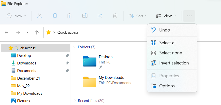 Egyes felhasználók panaszkodnak, hogy a File Explorer összeomlik a Windows 11 -ben, amikor a jobb egérgombbal kattint az ablakra, például vágás, másolás, beillesztés vagy átnevezés. Az egyik alapvető megoldás egyelőre a jobb egérgombbal való tartózkodás. Ehelyett használhatja a File Explorer felső menüsorát. Már a legtöbb gyakran használt funkcióval rendelkezik. Ez egy ideiglenes megoldás, amíg a fejlesztők nem találnak állandó megoldást.