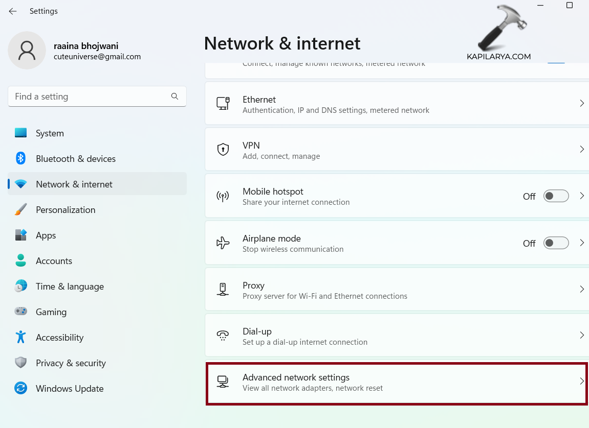 3. javítás: A hálózati beállítások visszaállítása az érvénytelen IP -cím problémájának javításához a Windows 11 -ben