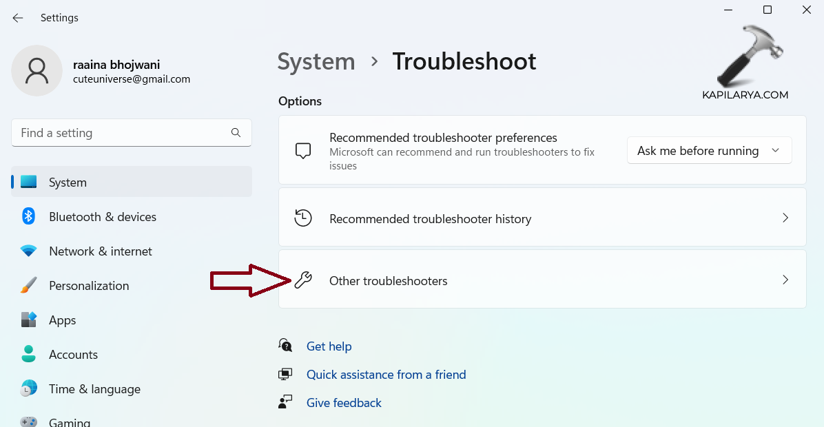 3. Kattintson az „Egyéb hibaelhárítók” elemre.