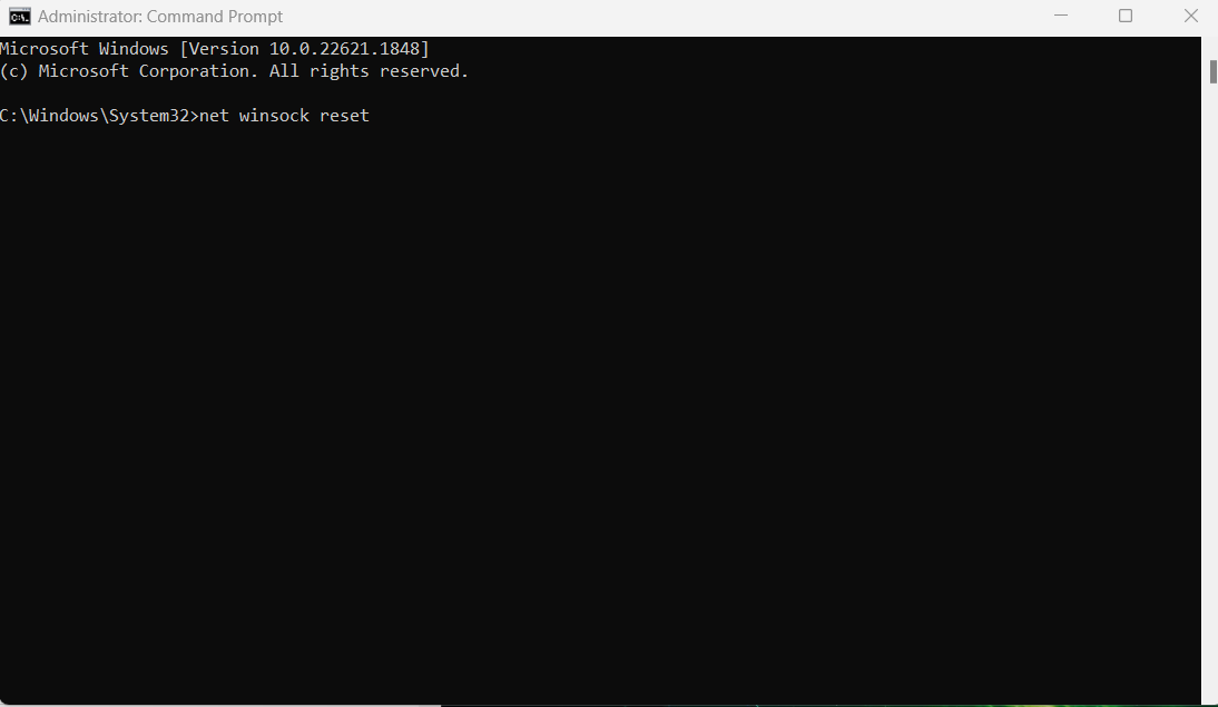 netsh winsock reset