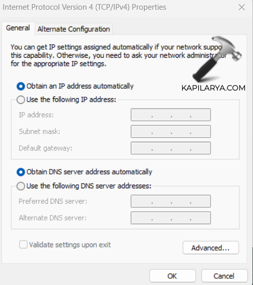 Javítás 7: Hagyja, hogy a Windows automatikusan megszerezze az IP -címet
