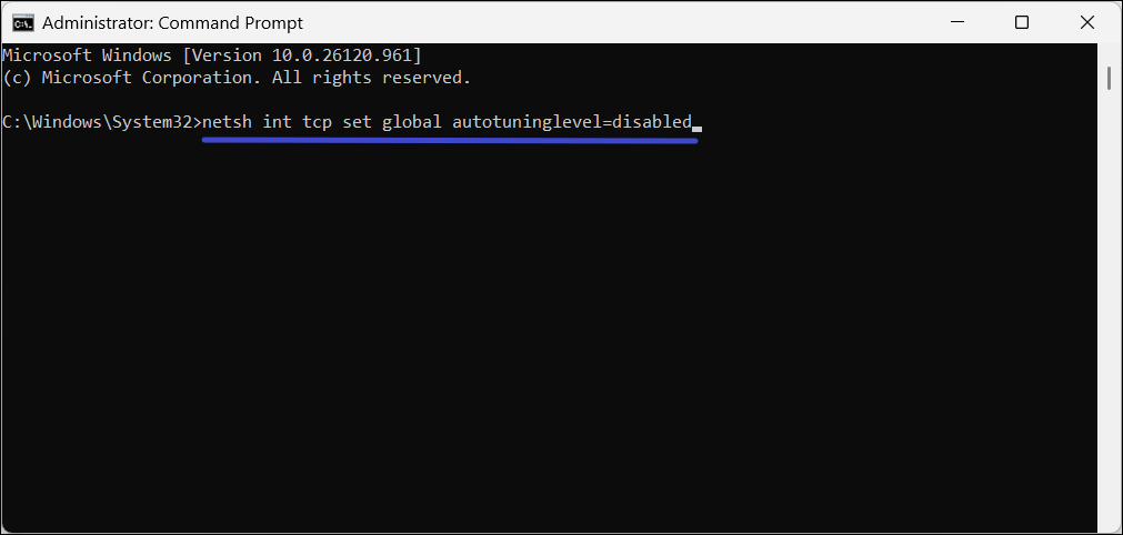 2. A megemelt parancssor ablakban írja be a következő parancsot, és nyomja meg az Enter billentyűt:
