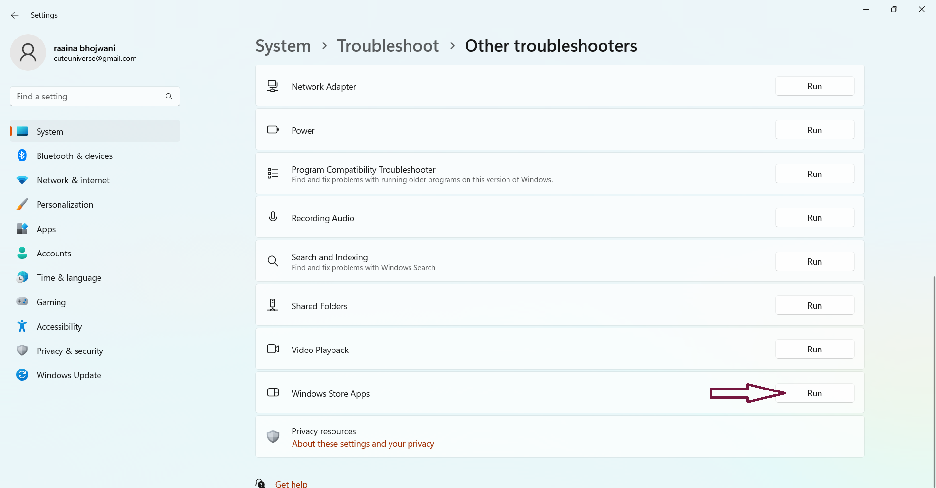 Most kattintsonEgyéb hibaelhárítókÉs akkor kattintson a KattintsonFutaWindows Store alkalmazásokszakasz.