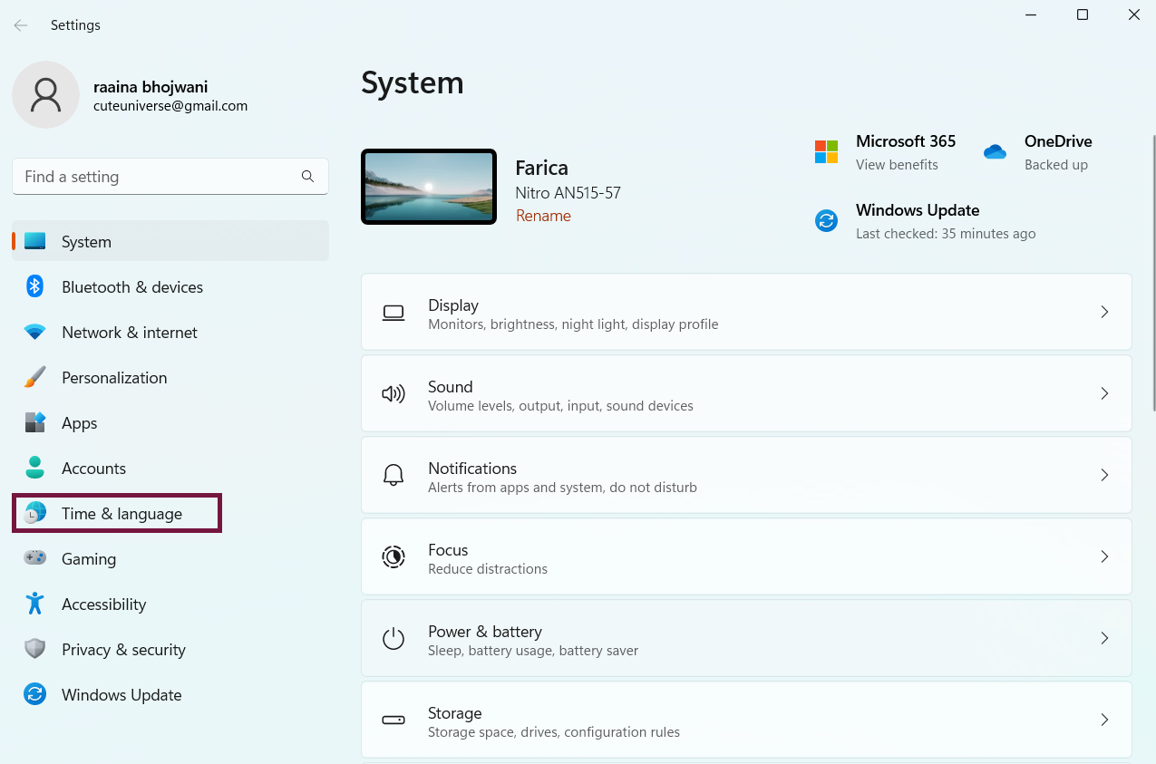 NyitottBeállításokA Win + I kulcsok megnyomásával. Ezután kattintson a gombraIdő és nyelv-
