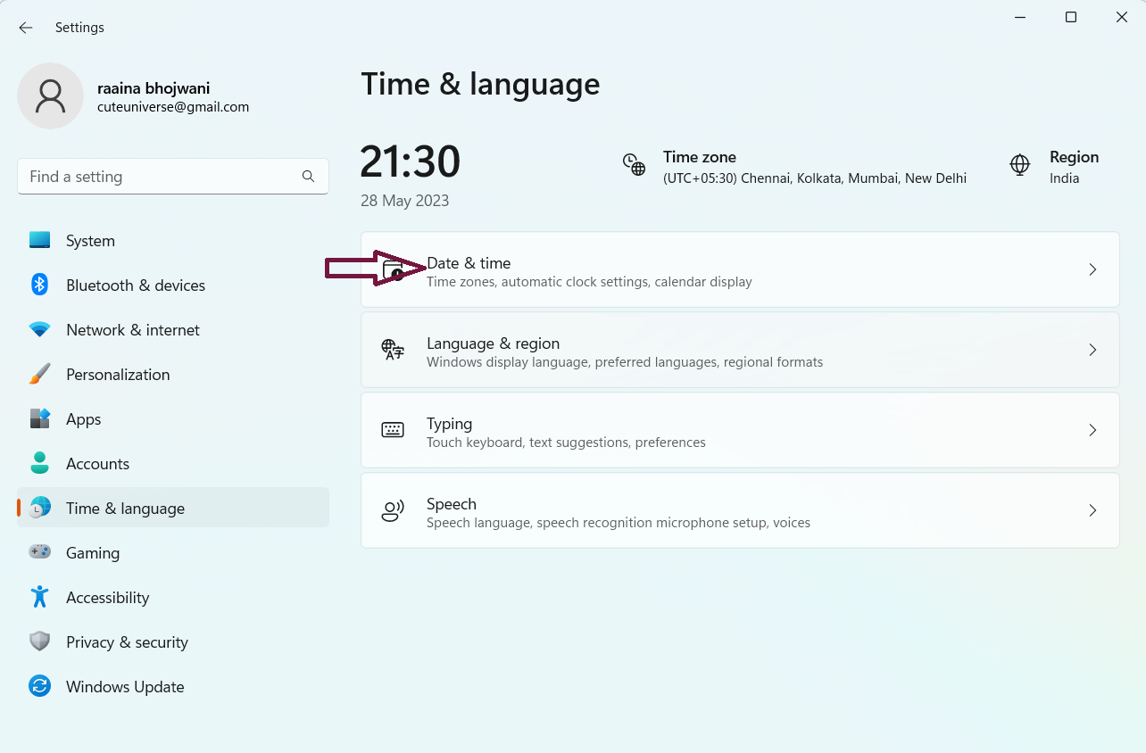 Ezután kattintson a gombraDátum és idő-