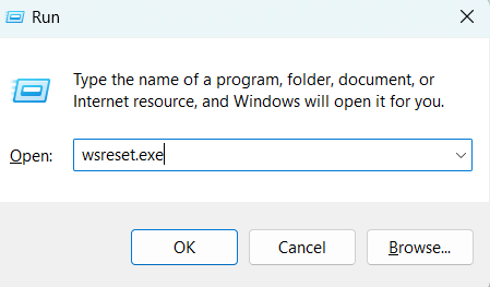 Ezután írja be a wsreset.exe fájlt, és nyomja meg az Enter billentyűt.