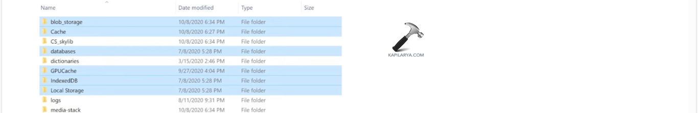 2. lépés-Ezután törölje az összes fájlt az alább megadott mappákból, miközben a mappákat