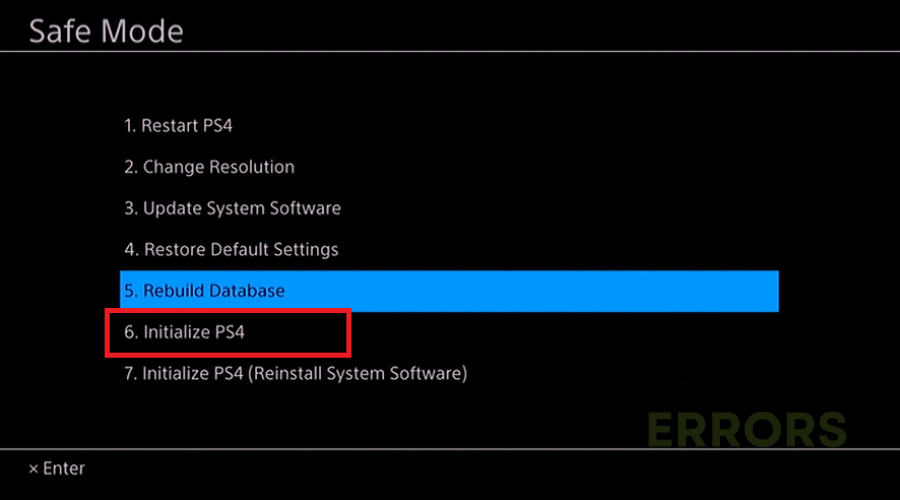 - Jelölje ki a hatodik lehetőséget, és kattintsonInicializálja a PS4 -et.