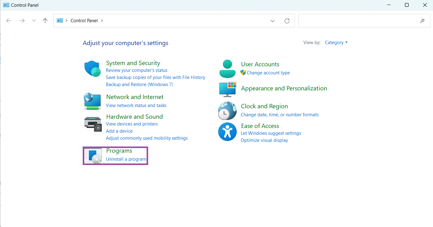 - Nyissa meg aVezérlőpultés kattintson ráProgramok.