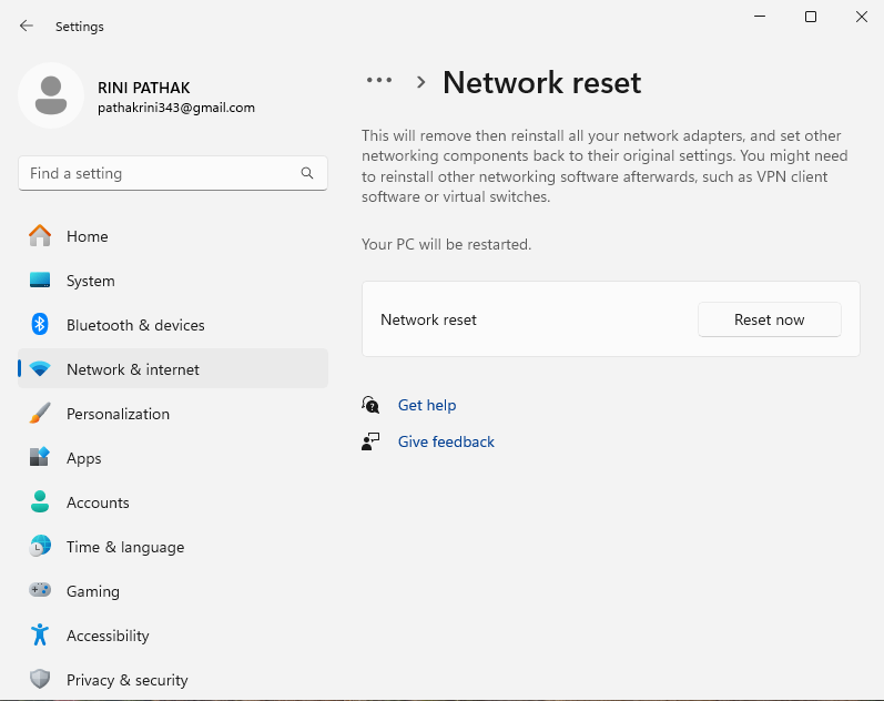 Egy másik javítás a No Internet probléma megoldására a Windows 11 -ben való tiszta telepítés után, a hálózat visszaállítása. Kövesse az alább megadott lépéseket, hogy ugyanezt tegye.