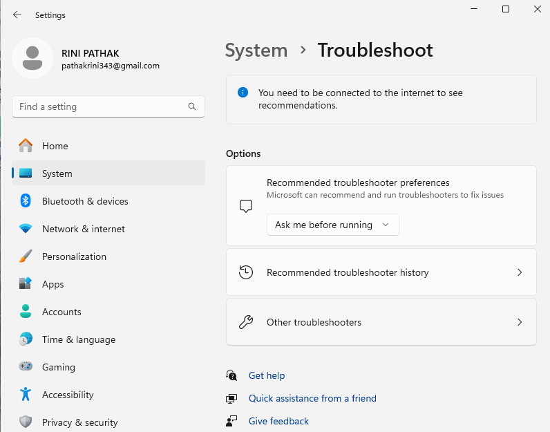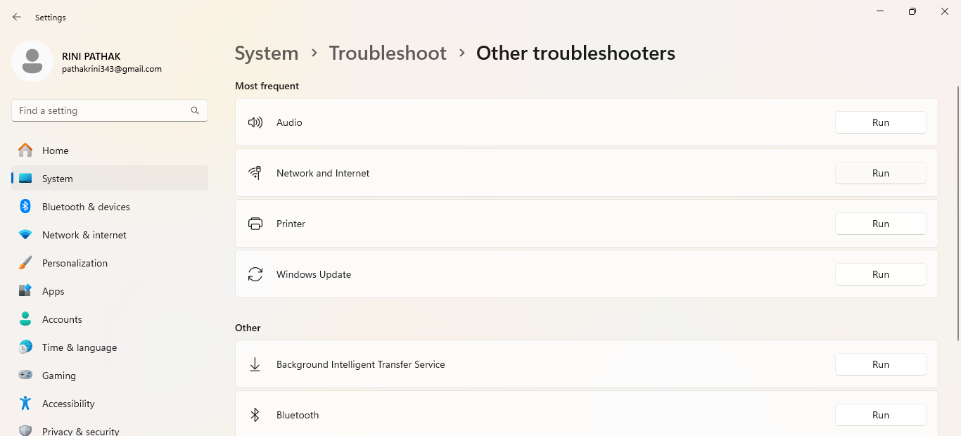 1. lépés-Mindenekelőtt lépjen a Beállítások> Rendszer> Hibaelhárítók> Egyéb hibaelhárító elemre.