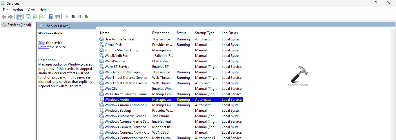 Néha a Windows Audio Service egyszerű újraindítása is a fent említett probléma megoldásához vezethet. Ezért ehhez kövesse az alábbi lépéseket.