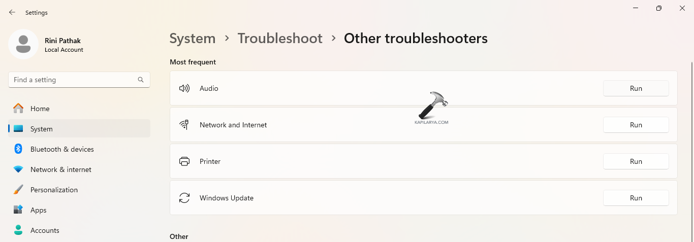 1. lépés-Először nyissa meg a Beállítások> Rendszer> Hibaelhárítás> Egyéb hibaelhárítók menüpontot.