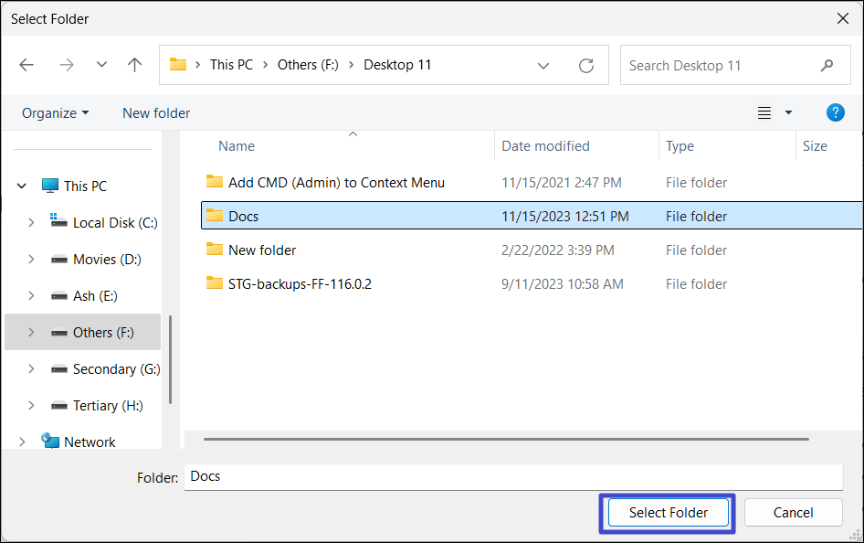 5. Keresse meg a kizárni kívánt fájlt vagy mappát, és válassza ki. Ezután kattintson a „Válassza ki a mappát"Vagy"Nyitott„.