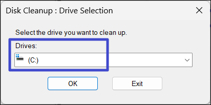 2. Válassza ki a rendszermeghajtót, ahol a Windows telepítve van (ez általában vanC:), és kattintson a “RENDBEN'.
