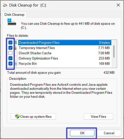 5. Miután kiválasztotta az eltávolítani kívánt fájlokat, kattintson a “RENDBEN„.