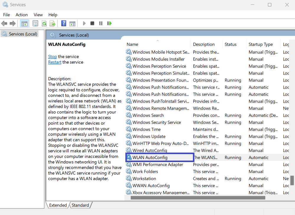 Javítás 1: Automatizálja a „WLAN AutoConfig” -t