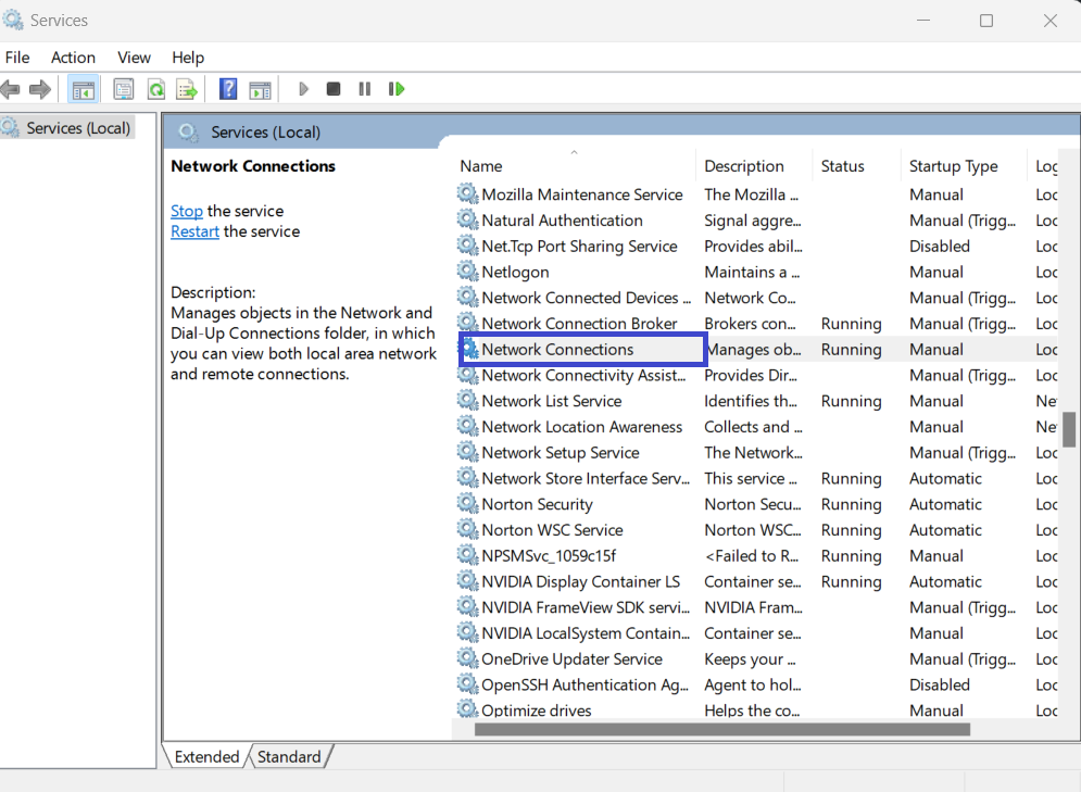 4. Menj vissza a Szolgáltatások ablakba, és kattintson duplán a hálózati kapcsolatokra.