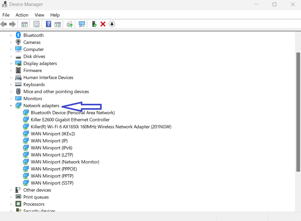 1. Nyissa meg az Eszközkezelőt, és kattintson a hálózati adapterekre.