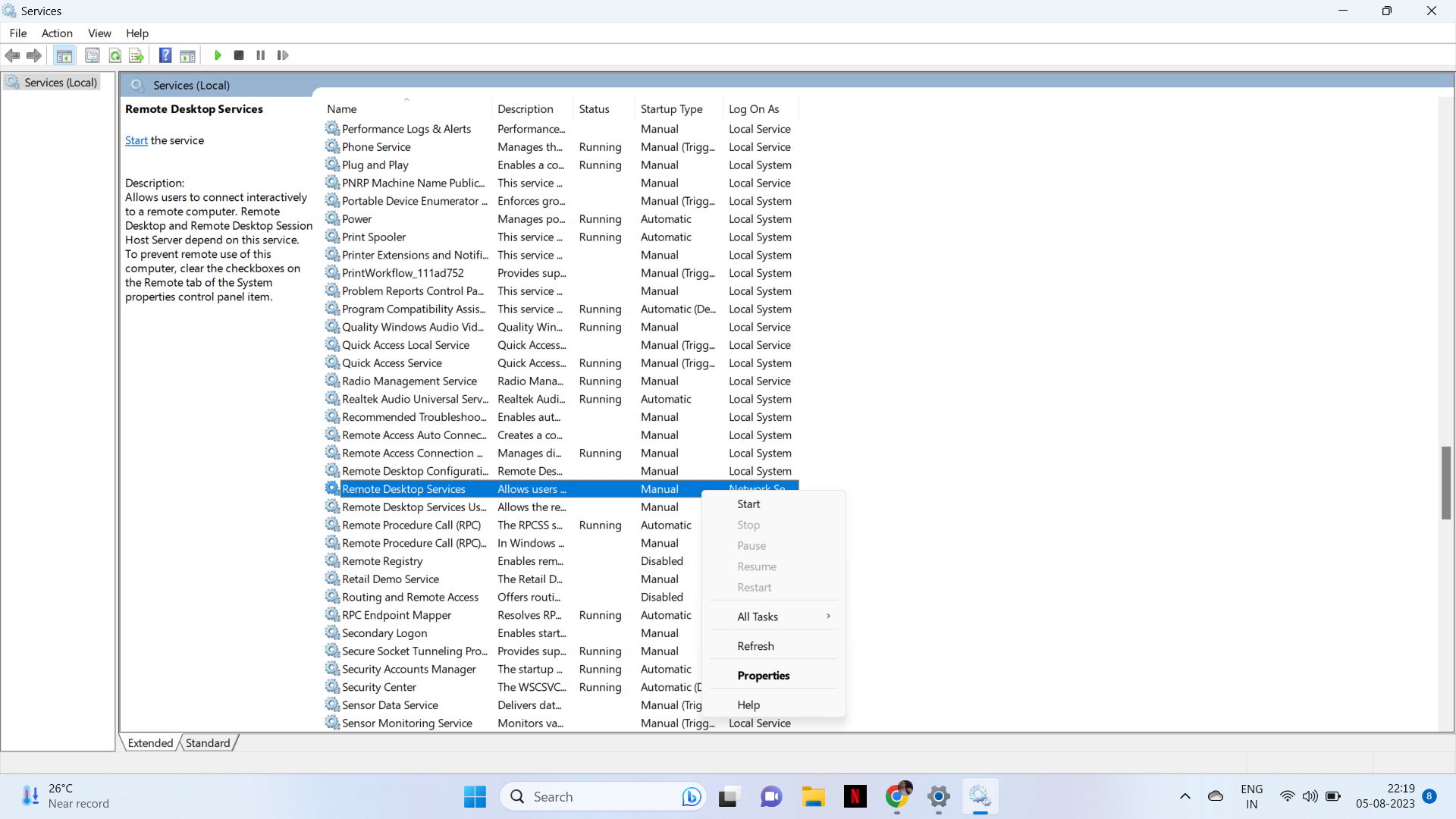 A kezdéshez a távoli asztali szolgáltatások újraindítása gyakran megoldhatja a problémát. Így lehet megtenni:
