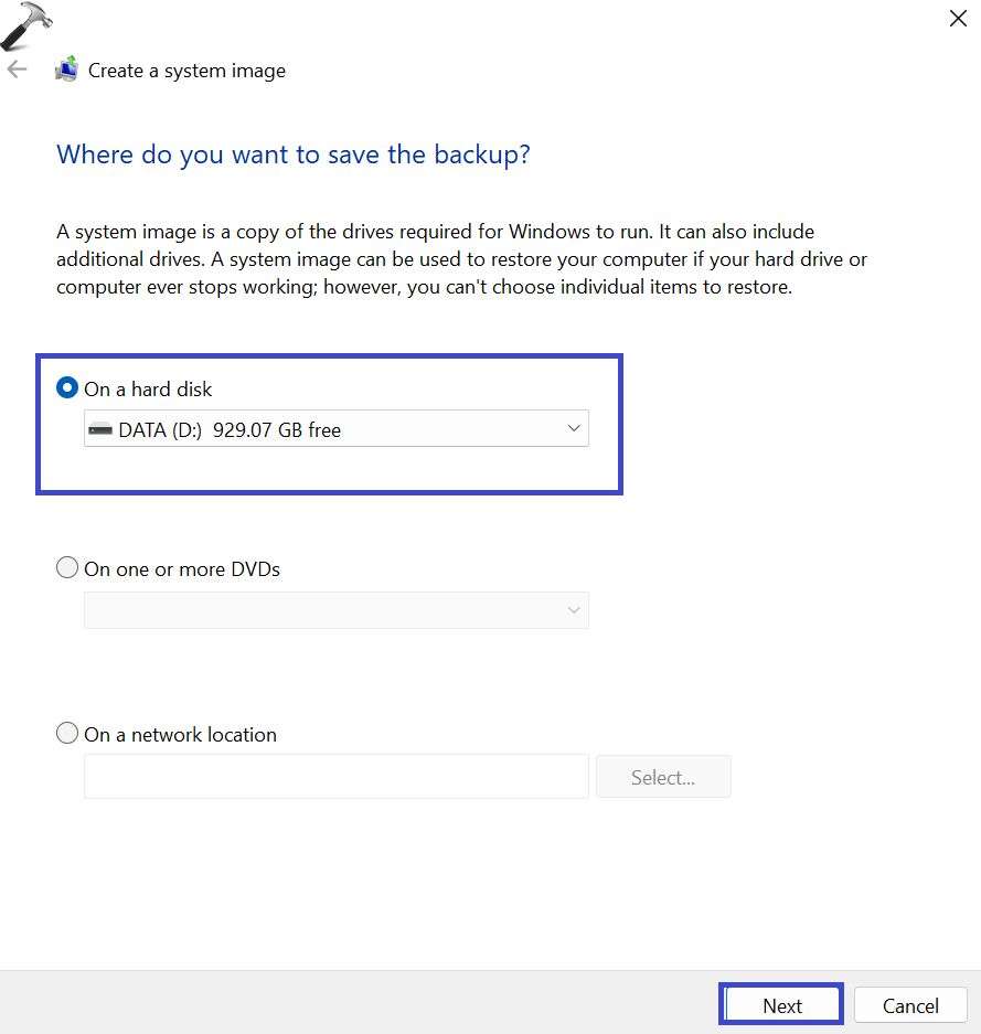 3. Adja meg a helyet, ahová menteni szeretné a rendszerképet. Ez lehet:
