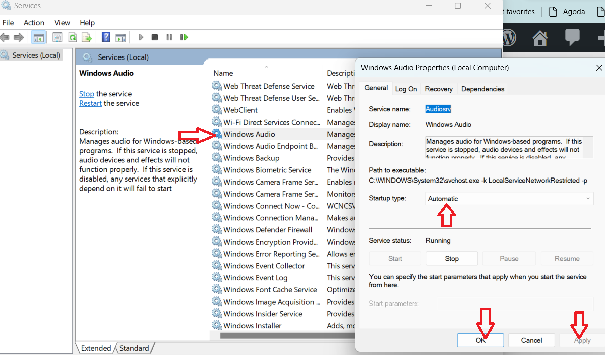5. javítás: Indítsa újra a Windows Audio szolgáltatást
