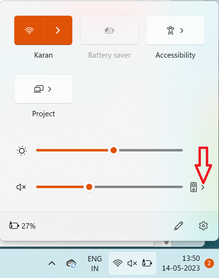 - Ezután kattintson a nyílra a hangerőszabályozás mellett.