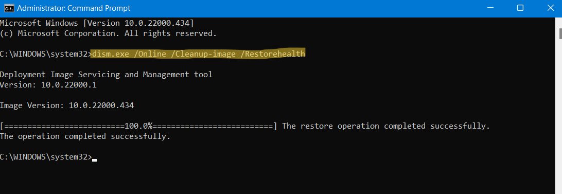 Fix 3: A rendszer egészségének helyreállításához történő displáció futtatásával