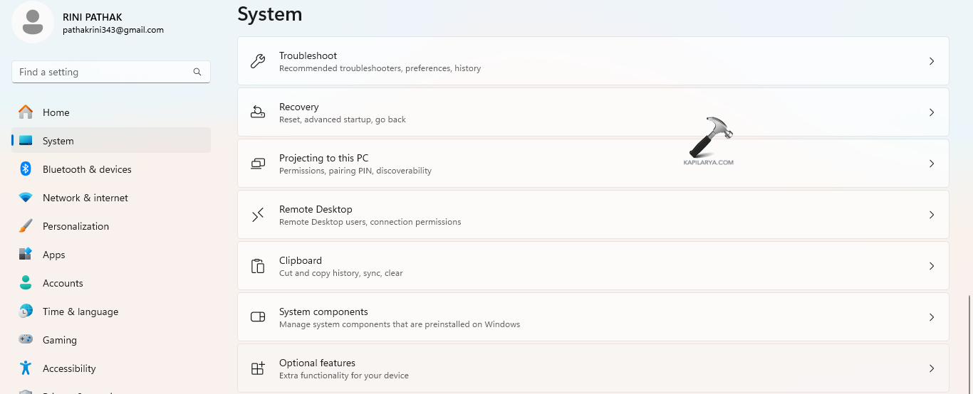 1. lépés-Nyissa meg a Beállítások> Rendszer> Opcionális funkciók oldalt.